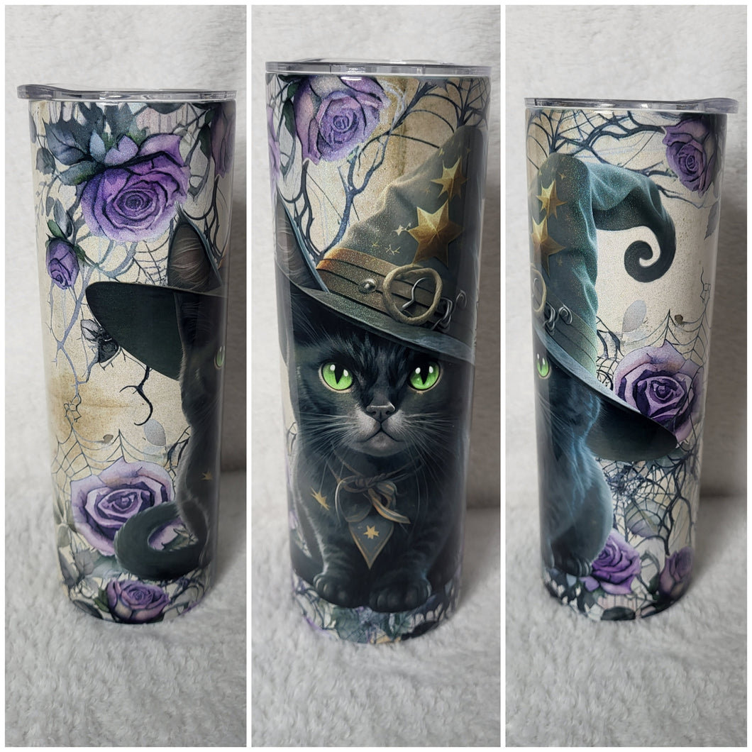 Black Cat Witch Hat 20oz skinny tumbler